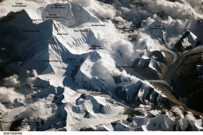 The name of photographer is still unknown as NASA doesn’t disclose it. This picture was taken by ISS expedition 13 crew. If you want to see the annotated version, here is one by famous climber, mountain blogger Alan Arnette.